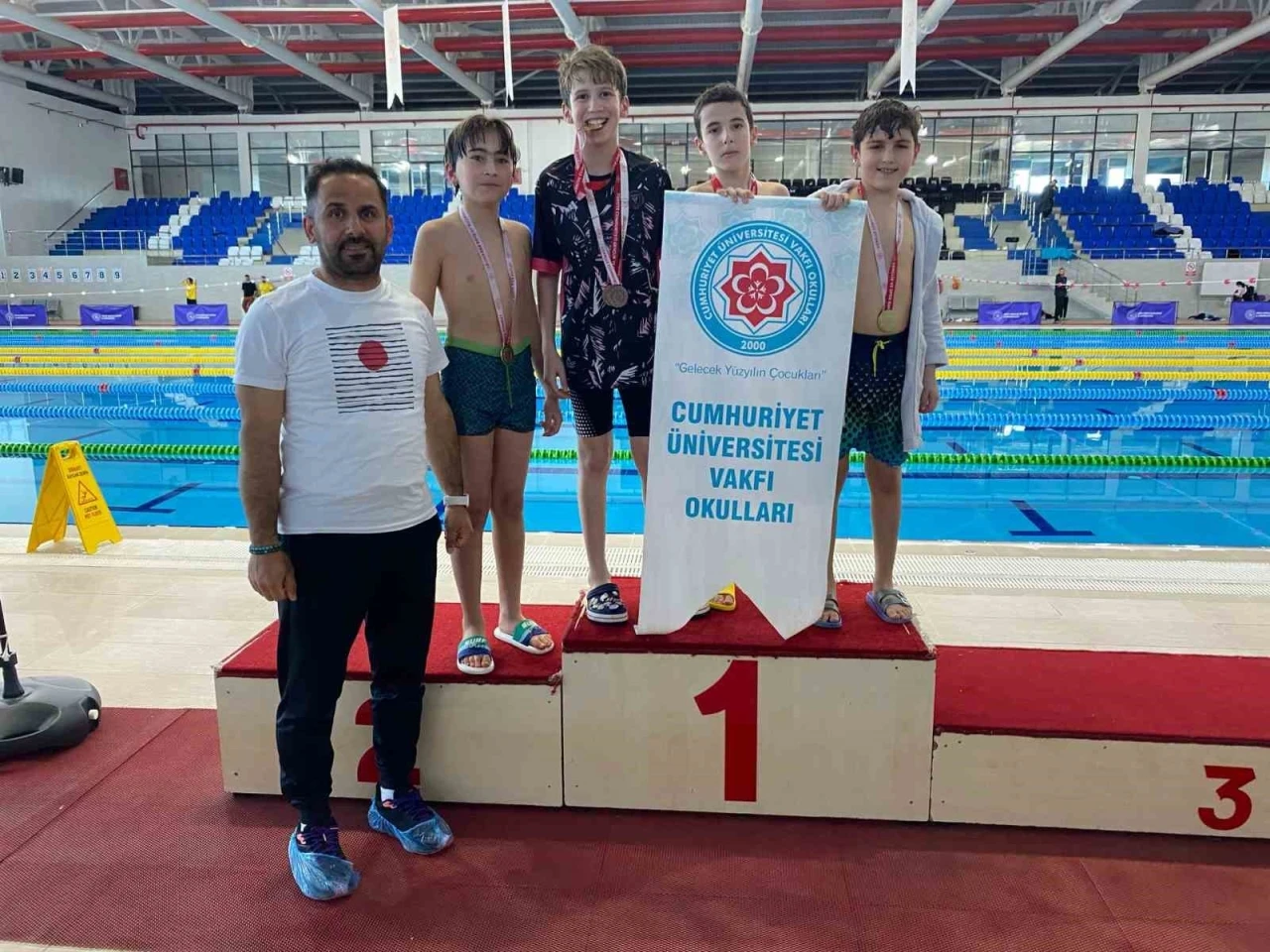 Sivas’ta Cumhuriyet Üniversitesi Vakfı Okulları Özel Mahir Sevim Özduman İlkokulu öğrencileri, Sivas’ta düzenlenen Minikler Tenis Kız müsabakalarına katıldı. CÜ Vakfı Okulları öğrencileri, takım arasında gerçekleştirilen yarışmalar sonucunda şampiyon oldu. Yüzme branşında yarışan sporcu öğrenciler İpek Kuruoğlu, Elif Duru Güçcük, Efehan Başkurt, Yusuf Buğra Yurteri de çeşitli başarılara imza attı. Takım yarışlarında kız öğrenciler il ikincisi olurken erkek öğrenciler il üçüncüsü oldu.