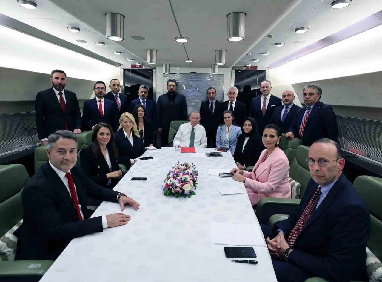 Cumhurbaşkanı Recep Tayyip Erdoğan, Azerbaycan ziyareti dönüşü uçakta gazetecilerle söyleşi gerçekleştirdi. 30 yıllık işgalin ardından özgürlüğüne kavuşan Karabağ’ı bir kez daha görmekten memnuniyet duyduklarını ifade eden Cumhurbaşkanı Erdoğan, ziyareti vesilesiyle Laçın Havalimanı’nın açılışını Azerbaycan Cumhurbaşkanı İlham Aliyev ile birlikte gerçekleştirdiklerini söyledi. 2021 ve 2022 yıllarında Fuzuli ve Zengilan havalimanlarının açılışlarını da Aliyev ile gerçekleştirdiklerini hatırlatan Cumhurbaşkanı Erdoğan, işgalden kurtarıldıktan sonra Azerbaycan’ın Karabağ’ın her köşesinde kalkınma ve imar seferberliğini tüm hızıyla devam ettirdiğini gördüklerini kaydetti. Bu imar çalışmalarına Türkiye’den birçok şirketin katkıda bulunmasının kendileri için övünç kaynağı olduğunu belirten Cumhurbaşkanı Erdoğan, Laçın Havalimanı’nın yapımında da 10’u aşkın firmanın görev aldığını sözlerine ekledi. Cumhurbaşkanı Erdoğan, ayrıca liderler düzeyindeki ilk toplantısını 2024 yılında yaptıkları Türkiye, Azerbaycan ve Pakistan bölgesel istişare mekanizmasının ikinci zirvesini Pakistan Başbakanı Şahbaz Şerif’in katılımıyla gerçekleştirdiklerini dile getirdi. Heyetteki bakanların da muhataplarıyla bir araya gelerek ortak gündemdeki konuları ele aldığını kaydeden Cumhurbaşkanı Erdoğan, "Malumunuz hem Azerbaycan hem de Pakistan’la her düzeyde yoğun temas ve iş birliğimiz bulunuyor. İlham Aliyev kardeşimle geçtiğimiz günlerde Avrupa Siyasi Topluluğu Zirvesi ve Türk Devletleri Teşkilatı Gayriresmi Zirvesi sırasında bir araya gelmiştik. Pakistan Başbakanı Sayın Şahbaz Şerif’i de geçtiğimiz hafta sonu İstanbul’da ağırlamıştık. Kendileriyle istişarelerimizde ikili mevzuların yanı sıra bilhassa üç ülkeyi ilgilendiren bölgesel gelişmeler hakkında fikir teatisinde bulunduk. Ticaret, yatırımlar, enerji iş birliği, gıda güvenliği ve hazar geçişli doğu-batı orta koridoru gibi konuları değerlendirdik" değerlendirmesini yaptı.