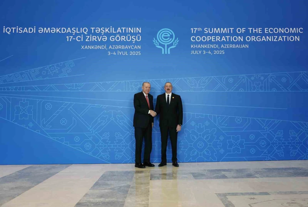 Ekonomik İşbirliği Teşkilatı (EİT) 17. Zirvesi, Azerbaycan’ın Hankendi şehrinde başlıyor. Cumhurbaşkanı Recep Tayyip Erdoğan, zirvenin düzenlendiği Hankendi Kongre Merkezi’ne gelişinde Aliyev tarafından karşılandı. Erdoğan’ın yanı sıra zirveye katılacak liderler Aliyev tarafından tek tek karşılandı. Zirveye Erdoğan’ın yanı sıra İran Cumhurbaşkanı Mesud Pezeşkiyan, Pakistan Başbakanı Şahbaz Şerif, Özbekistan Cumhurbaşkanı Şevket Mirzioyev, Kırgızistan Cumhurbaşkanı Sadr Caparov, Kazakistan Başbakanı Oljas Bektenov, Tacikistan Cumhurbaşkanı İmamali Rahman, Türkmenistan Dışişleri Bakanı Raşid Meredov, Afganistan Başbakanı Yardımcısı Abdulgani Baradar ve toplantılara gözlemci olarak katılan Kuzey Kıbrıs Türk Cumhuriyeti (KKTC) Cumhurbaşkanı Ersin Tatar da katılıyor.