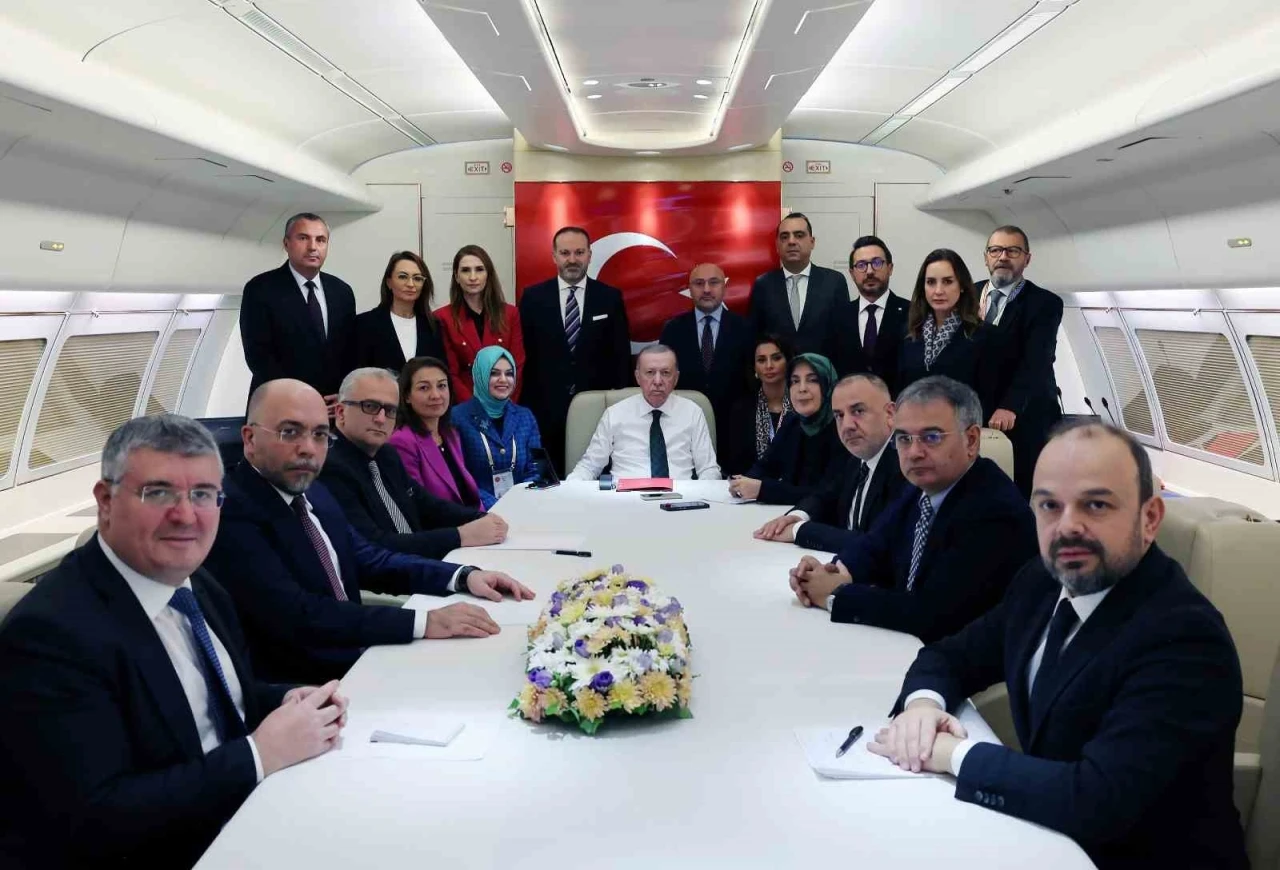 Erdoğan, Tataristan ziyareti dönüşünde uçakta gazetecilere açıklamalarda bulundu. Erdoğan, "Öncelikle TUSAŞ’ın Kahramankazan’daki yerleşkesine yapılan hain terör saldırısında şehit olan 5 kardeşimize Allah’tan rahmet, yaralılarımıza acil şifalar diliyorum. Türkiye’nin huzuru, güvenliği, savunması için çalışan TUSAŞ ailesine ve aziz milletimize ’geçmiş olsun’ diyorum. Alçak saldırıyı gerçekleştiren, biri kadın 2 terörist ölü olarak ele geçirilmiştir" dedi.