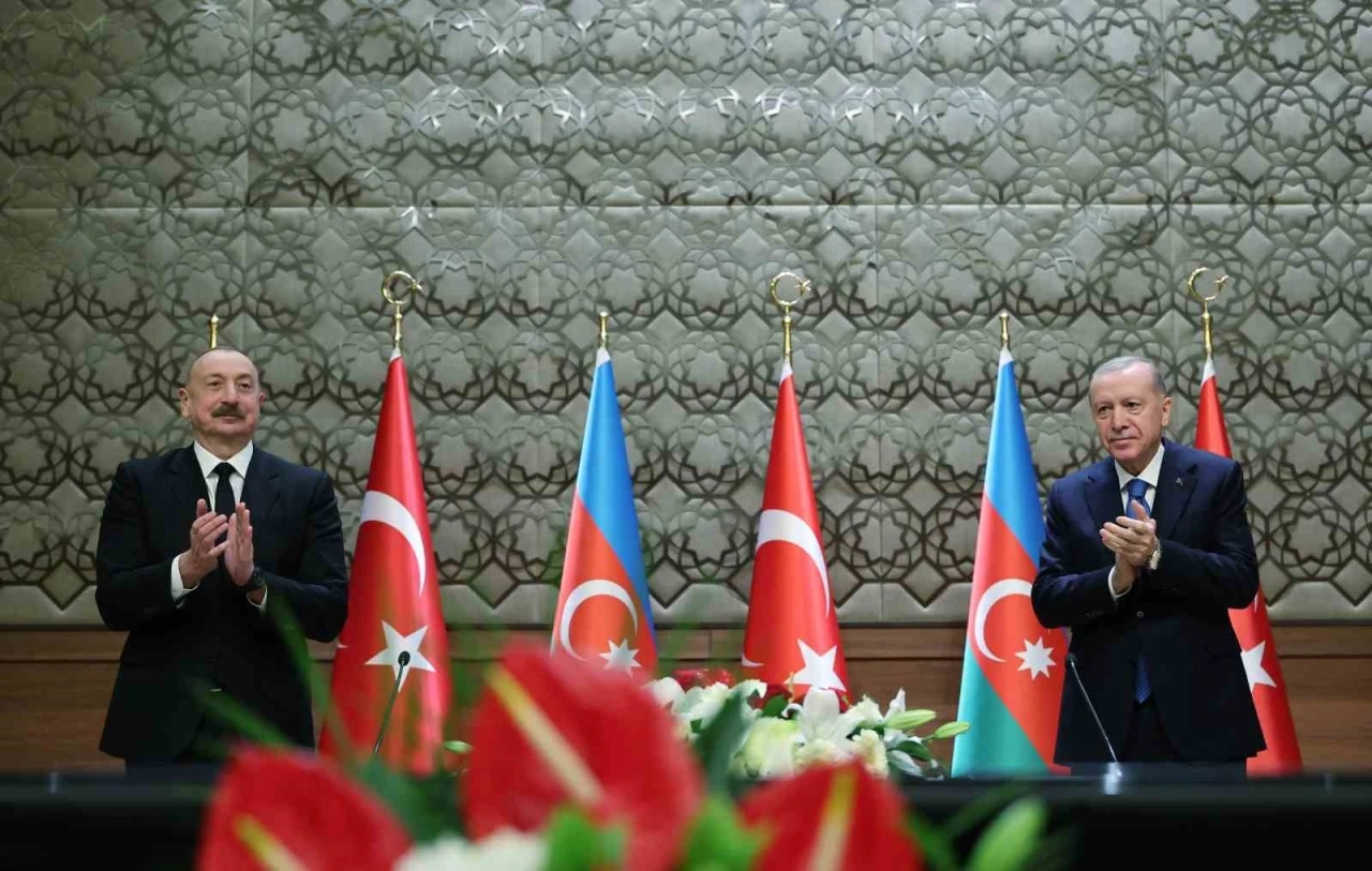 Cumhurbaşkanı Recep Tayyip Erdoğan, "Türkiye ve Azerbaycan, barışın, huzurun ve refahın tarafındadır. Bölgemizde sadece barış istiyoruz, iş birliği istiyoruz, hep beraber kalkınalım istiyoruz. Bundan sonra da bölgesel barışa, refaha ve huzura yönelik her türlü projeyi birlikte hayata geçirme kararlılığındayız" dedi.