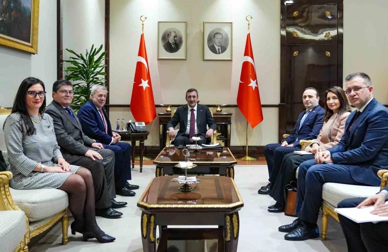 Cumhurbaşkanı Yardımcısı Cevdet Yılmaz, Şili Dışişleri Bakanı Alberto van Klaveren ile Cumhurbaşkanlığı Külliyesi’nde bir araya geldi. Yılmaz, görüşmede Türkiye ve Şili’nin diplomatik ilişkilerinin 2026 yılında 100. yılı olması kapsamında yapılacak etkinlikler, ekonomik ve ticari iş birliği, savunma sanayii alanındaki ortaklıklar, parlamentolar arası temaslar, Antarktika’daki çalışmalar ile turizm ve spor alanlarındaki iş birliği fırsatlarını değerlendirdiklerini belirtti. Yılmaz, "Türkiye olarak, Şili ile ilişkilerimize büyük önem veriyor, bu yapıcı diyaloğun iş birliğimizi daha da güçlendireceğine inanıyoruz. Nazik ziyaretleri ve samimi iş birliği yaklaşımı için Sayın Klaveren ve heyetine teşekkür ediyorum" dedi.