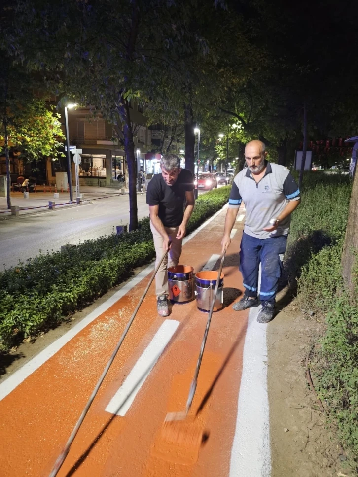 Kocaeli Büyükşehir Belediyesi Park ve Bahçeler Dairesi Başkanlığı ekiplerinin yürüttüğü çalışmayla, Cumhuriyet Bulvarı’nda bisiklet yolunun silinen boyaları yenilendi. Bisiklet yollarının daha estetik bir görünüme kavuşması için gerçekleştirilen çalışmalar düzenli olarak kent genelinde devam edecek. Ekipler, bulvar üzerinde vatandaşların oturup dinlendiği kent donatılarına da vernik uygulaması yapıyor. Dış etkenlere, darbelere ve deformasyonlara karşı korumak için gerçekleştirilen vernik uygulaması kent donatılarının daha da uzun ömürlü kullanılmasını sağlıyor.