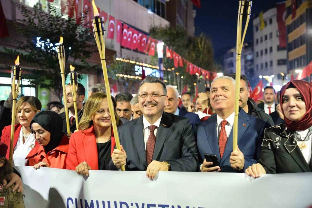 Cumhuriyet’in 101. yıl dönümü kutlamaları çerçevesinde düzenlenen fener alayına katılan Büyükşehir Belediye Başkanı Ahmet Metin Genç, "Cumhuriyetimizin 101. yılını fener alayı ile coşkuyla kutladık, birliğimizi ilelebet koruyacağız" dedi.