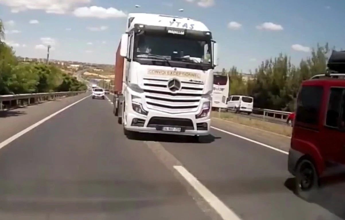 Olay, dün saat 12.30 sıralarında D-110 Karayolu Tekirdağ merkez Süleymanpaşa ilçe İstanbul istikametinde meydana geldi. Tekirdağ çıkışında 34 HFR 687 plakalı tırın, trafikteki araçlara selektör yaparak taciz edici şekilde ilerlediği anlarda önündeki otomobildekiler kısa süreli korku dolu anlar yaşadı. Tehlikeli anları bir otomobilin güvenlik kamerası tarafından saniye saniye kaydedilirken, yolda bulunan vatandaşlar, yaşananlara tepki gösterdi. Olayın tanıklarından Azad Akbaloğlu, şunları söyledi: