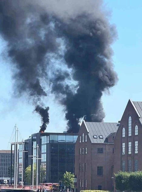 Danimarka’nın başkenti Kopenhag’da bulunan Vergi Bakanlığı’nda yangın çıktı. Kopenhag’ın merkezinde bulunan ofis binasından yoğun siyah dumanlar yükselirken yangını söndürme çalışmaları sürüyor. Danimarka polisi bakanlığa bağlı ofis binasında çıkan yangın nedeniyle çevre binalarda bulunanların tahliye edildiğini duyurdu. Herhangi bir yaralı ya da can kaybının yaşanmadığı açıklandı.