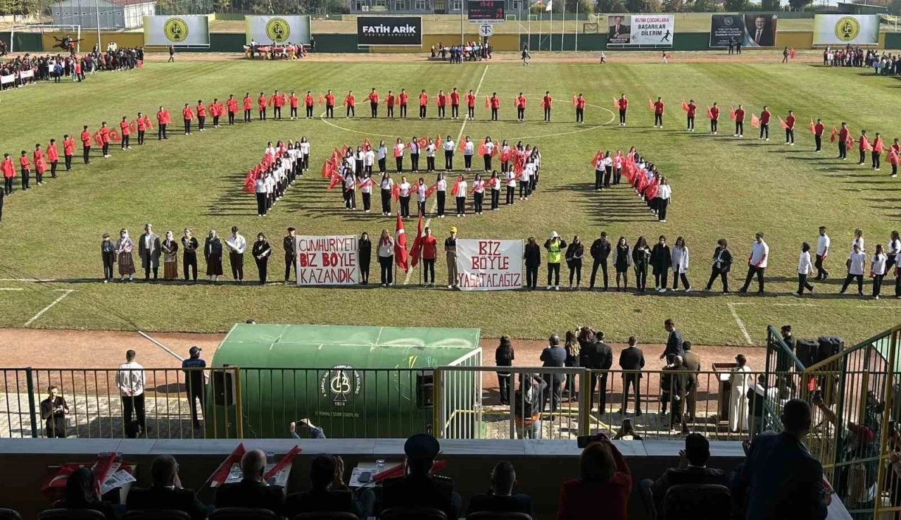 İlçe stadyumunda gerçekleşen kutlama töreninde öğrenciler ve öğretmenlerin hazırladığı 101. yıl sunumu izleyenlere duygusal anlar yaşatırken, birbirinden renkli görüntüler sergilendi. Öğrencilerin hazırladığı gösteriler büyük beğeni topladı.