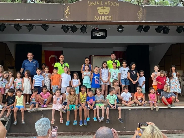 Muğla’nın Datça ilçesinde tatil sitesindeki çocuklara trafik eğitimi verildi. Datça İlçe Emniyet Müdürlüğü Trafik Tescil ve Denetleme Büro Amirliği personelleri tarafından bir tatil sitesindeki 150 küçük yaştaki çocuğa trafik eğitimi verildi. Hacivat-Karagöz figürleri kullanılarak verilen görsel eğitimde özellikle trafik ışıkları, yaya geçidi kullanımı, okul servis kuralları, bisiklet-elektrikli bisiklet kullanımı, koruyucu donanımların kullanımı, hakkında gerekli bilgilendirmeler yapıldı. Eğitim sonunda çocuklara dedektif polis kartları ve eğitici broşürler dağıtıldı.