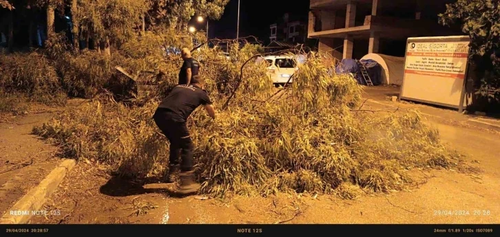 Hatay’ın Defne ilçesinde devrilen ağaç, ekiplerin çalışmasıyla kaldırıldı.