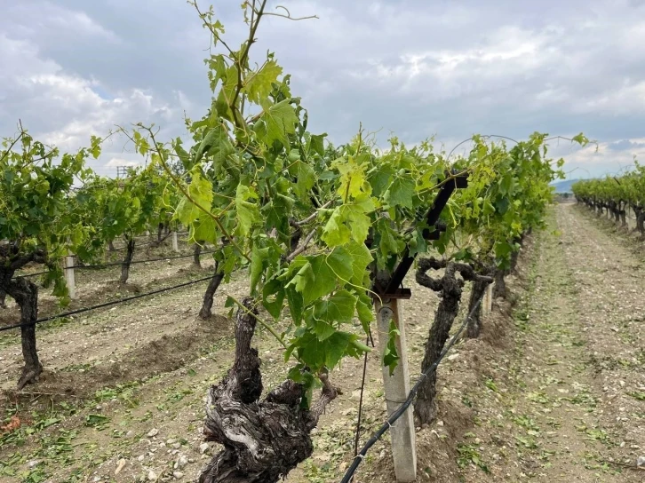 Denizli’de etkili olan dolu yağışı üzüm bağlarında zarara yol açtı. Denizli’nin Buldan ilçesinde meydana gelen dolu yağışı üreticileri olumsuz etkiledi. İlçe merkezinin yanı sıra Yenicekent, Oğuz, Doğanköy ve Bölmekaya mahallelerindeki yetiştirilen üzüm bağlarında asma yapraklarına ve yeni yetişmeye başlayan üzümlere zarar verdi. Çekirdeksiz Sultaniye üzümünün bulunduğu bağlarda büyük ölçüde zararın oluştuğu görüldü. Özellikle gelişmekte olan üzümlerin büyük zarar gördüğünü ifade eden Buldan Çiftçi Mallarını Koruma Derneği Başkanı Özkan Gümüş, “Yaptığımız tespitlere göre bağlarda yüzde atmış ila yüzde seksene varan zararlar var. Tüm çiftçilerimize geçmiş olsun dileklerimi iletiyorum” dedi. Zararının büyük olduğunu ifade eden üretici Osman Erkan, “Bir anda bastıran dolu yağışı nedeniyle bağlarımızdaki asmalarımız büyük zarar gördü. Tam şu anda çiçek üstü dediğimiz durumdaydı. TARSİM den ve büyüklerimizden bizlere yardım eli uzatmalarını ve derdimize derman olmalarını talep ediyoruz” ifadelerini kullandı.