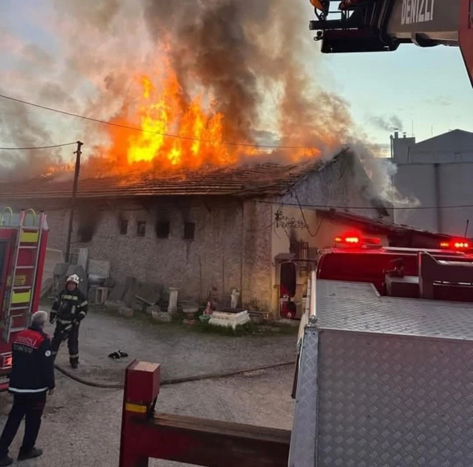 Denizli’de faaliyet gösteren alçı ve mermer imalathanesinde yangın çıktı. Yangında iş yeri kullanılamaz hale geldi.