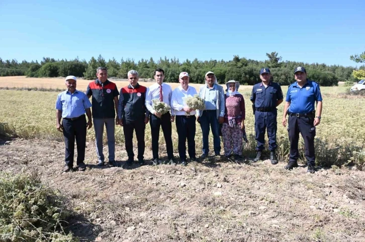Bu yıl Denizli genelinde yaşanan kuraklık ve yüksek sıcaklıkların da etkisi ile hasat dönemi daha erken başladı. Denizli’nin Güney İlçesine bağlı Aydoğdu Mahallesinde kekik hasadı gerçekleştirildi. Gerçekleştirilen hasada Denizli Valisi Ömer Faruk COŞKUN, Güney Kaymakamı Ahmet Murat TÜRBE, Denizli İl Tarım ve Orman Müdür Yardımcısı Saffet ÜGE, İlçe Müdürleri ile teknik personellerin yanı sıra muhtar ve çiftçiler katılım sağladı. 2023 yılında İlimizde 19 bin 714 hektar alanda 26 bin 983 ton kekik üretimi gerçekleştirildi. Pamukkale, Güney, Çal, Buldan, Bekilli, Tavas ve Kale İlçeleri üretimin en yoğun yapıldığı yerler. Ülkemiz kekik ekim alanlarının yüzde 91,2’sine sahip olan Denizli, üretimin yüzde 89.6’sını karşılamaktadır.