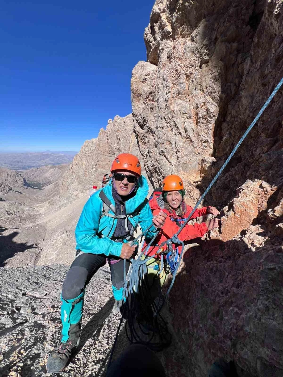 Denizli’de dağcılık sporcuları Gülcan Çeşmeli ve Özgür Eren, Niğde Aladağlar’da teknik tırmanış gerektiren 3734 metrelik Kaldı zirvesi ile 3580 metrelik Sulağankaya zirvesine ulaşarak büyük bir başarıya imza attı. Dağcılık sporcuları Gülcan Çeşmeli ve Özgür Eren, Niğde Aladağlar’da zorlu bir tırmanış gerçekleştirerek 3.734 metre yüksekliğindeki Kaldı zirvesi ve 3.580 metre rakımlı Sulağankaya zirvesine ulaştı. Teknik tırmanış gerektiren parkurda iki sporcu, değişken hava şartları ve sarp kayalık etaplara rağmen tırmanışı başarıyla tamamladı. Zirveye ulaşan sporcular, gurur dolu anlar yaşadı.
