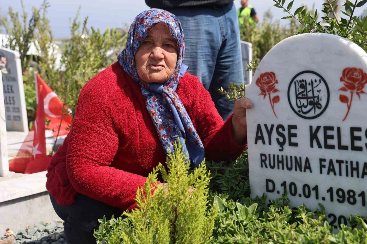 Depremde kaybettiği kızının mezarının başında gözyaşlarına hakim olamayan acılı anne Cemile Keleş, "Bizim evimiz gecekonduydu. Biz depremden kurtulduk ama kızım 6 katlı binanın altında kaldı. Binanın enkazından 5 gün sonra cenazesi çıktı. Nasıl özlediğimi bilemezsin. Kızım çok özlüyorum. Bir kız bir oğlan iki çocuğu arkasında bıraktı. Allah evlat acısını kimselere vermesin. Evlattan daha değerli kimse yokmuş. Bugün bayram ziyaretine geldik. O gece kızımın yanında oğlu kalıyordu ama o gün oğlu babasının yanına gitmiş. O gece evde tek başına kalıyordu. Allah kimseye bu acıyı göstermesin. Güzel yavrum bize çok düşkündü. Her bayram ziyaretine geliyoruz" dedi. "Buradaki hepimizin bayramı burası oldu ve başka nasıl bayram olur bilmiyoruz"