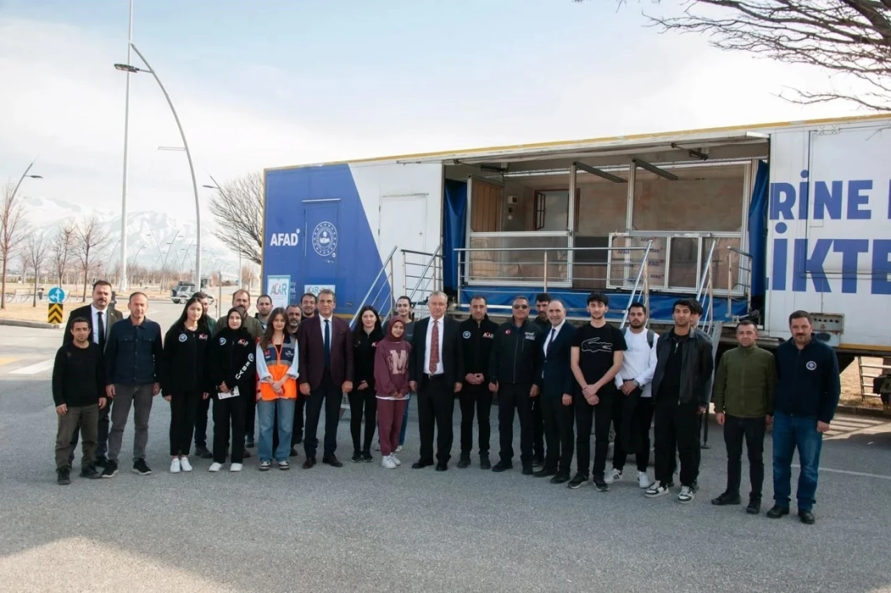 AFAD Deprem Simülasyon Tırı ile Erzincan Binali Yıldırım Üniversitesi’nde öğrencilere deprem anı ve deprem sırasında yapılması gerekenler aktarıldı.