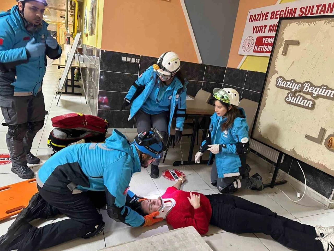 Düzce AFAD, Sağlık Müdürlüğü ile Gençlik ve Spor İl Müdürlüğü işbirliğinde öğrenci yurtlarında deprem tatbikatı gerçekleştirildi. Tatbikat gerçeğini aratmadı.