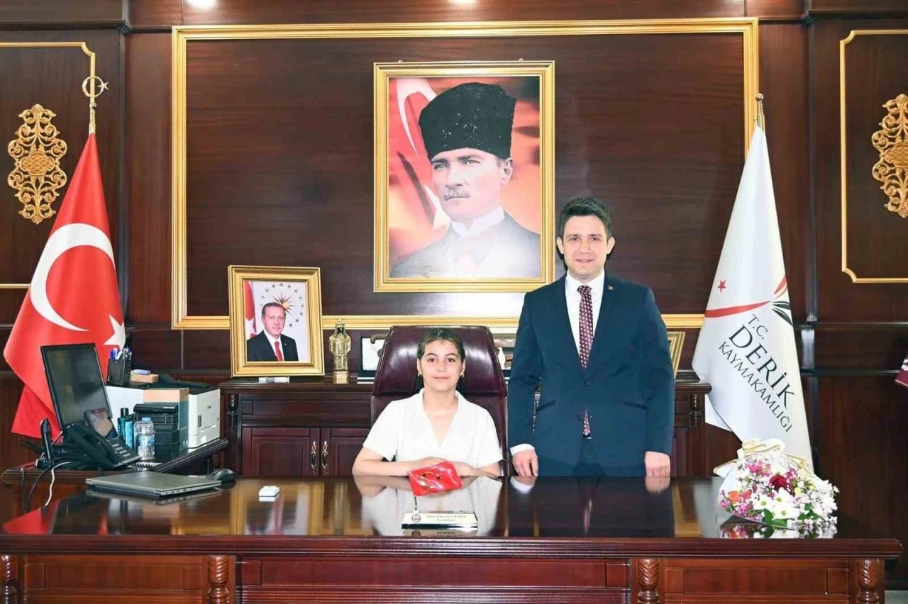 Mardin’in Derik ilçesinde, 23 Nisan Ulusal Egemenlik ve Çocuk Bayramı kapsamında temsili olarak Kaymakamlık makamına oturan 6. sınıf öğrencisi Aysima Erol, Derik Kaymakamı Yunus Emre Bayraklı’ya duygu yüklü bir mektup yazdı.