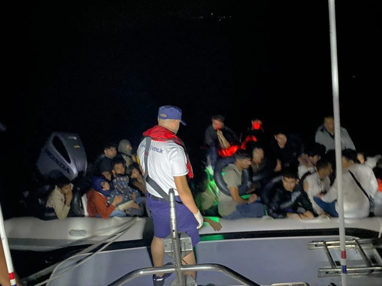Aydın’ın Didim ilçesi açıklarında Yunanistan tarafından geri itilen lastik bot içerisindeki 18’i çocuk 71 düzensiz göçmen kurtarıldı. Aydın’ın Didim ve Kuşadası açıklarından lastik bot veya can salları ile Yunanistan’a geçmeye çalışan düzensiz göçmenlere yönelik çalışmalar aralıksız devam ediyor. Edinilen bilgiye göre Türk Sahil Güvenliği tarafından Didim açıklarında lastik bot içerisinde düzensiz göçmenlerin olduğu tespit edildi. Bölgeye sevk edilen ekipler, Yunanistan tarafından Türk karasularına geri itildiği tespit edilen 18’i çocuk toplam 71 düzensiz göçmeni kurtardı. Kurtarılan düzensiz göçmenler gerekli sağlık kontrollerinin ardından Aydın Düzensiz Göçmen Ön Kabul ve Sevk Merkezi’ne (GÖKSEM) teslim edildi.