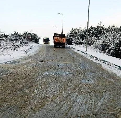 Dilovası’nda yoğun kar yağışı sonrasında ulaşımın aksamaması için yollar buzlanma riskine karşı tuzlanıyor.