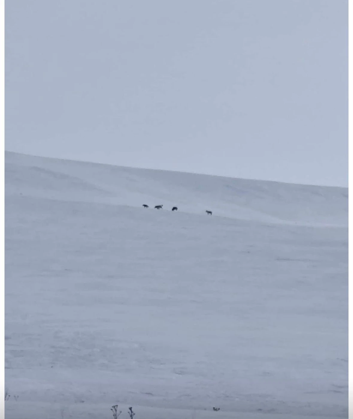 Ağrı’nın Diyadin ilçesinde etkili olan yoğun kar yağışının ardından kırsal alanda kurt sürüsü görüntülendi.