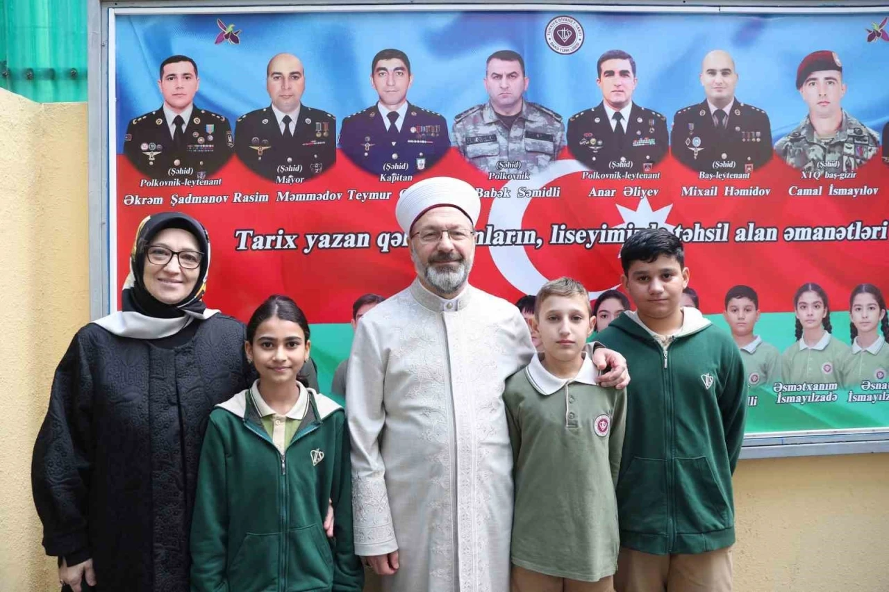 Öğrencilere ve okul yönetimine teşekkür eden Erbaş, öğrencilerle hatıra fotoğrafı çektirdi. Ziyarette Erbaş’a, Türkiye’nin Bakü Büyükelçisi Doç. Dr. Cahit Bağcı, Diyanet İşleri Başkanlığı Strateji Geliştirme Başkanı Mustafa Irmaklı ile Bakü Din Hizmetleri Müşaviri İhsan Açık eşlik etti.
