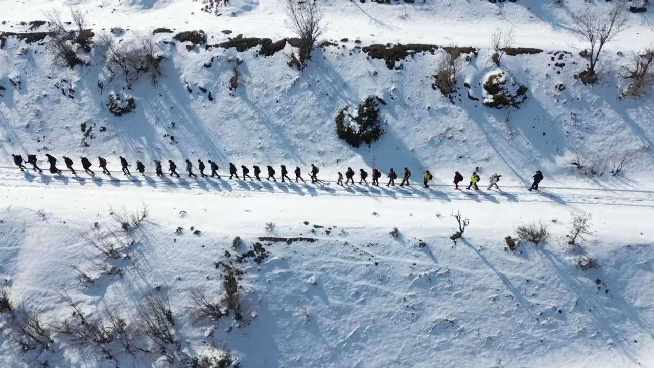 Diyarbakır’da Bisiklet ve Doğa Sporları Kulübü üyeleri, Çüngüş ilçesinde İtalyanların yaşadığı köyü gezdi. Karla kaplanan bölgedeki doğal güzelik dron ile görüntülendi.