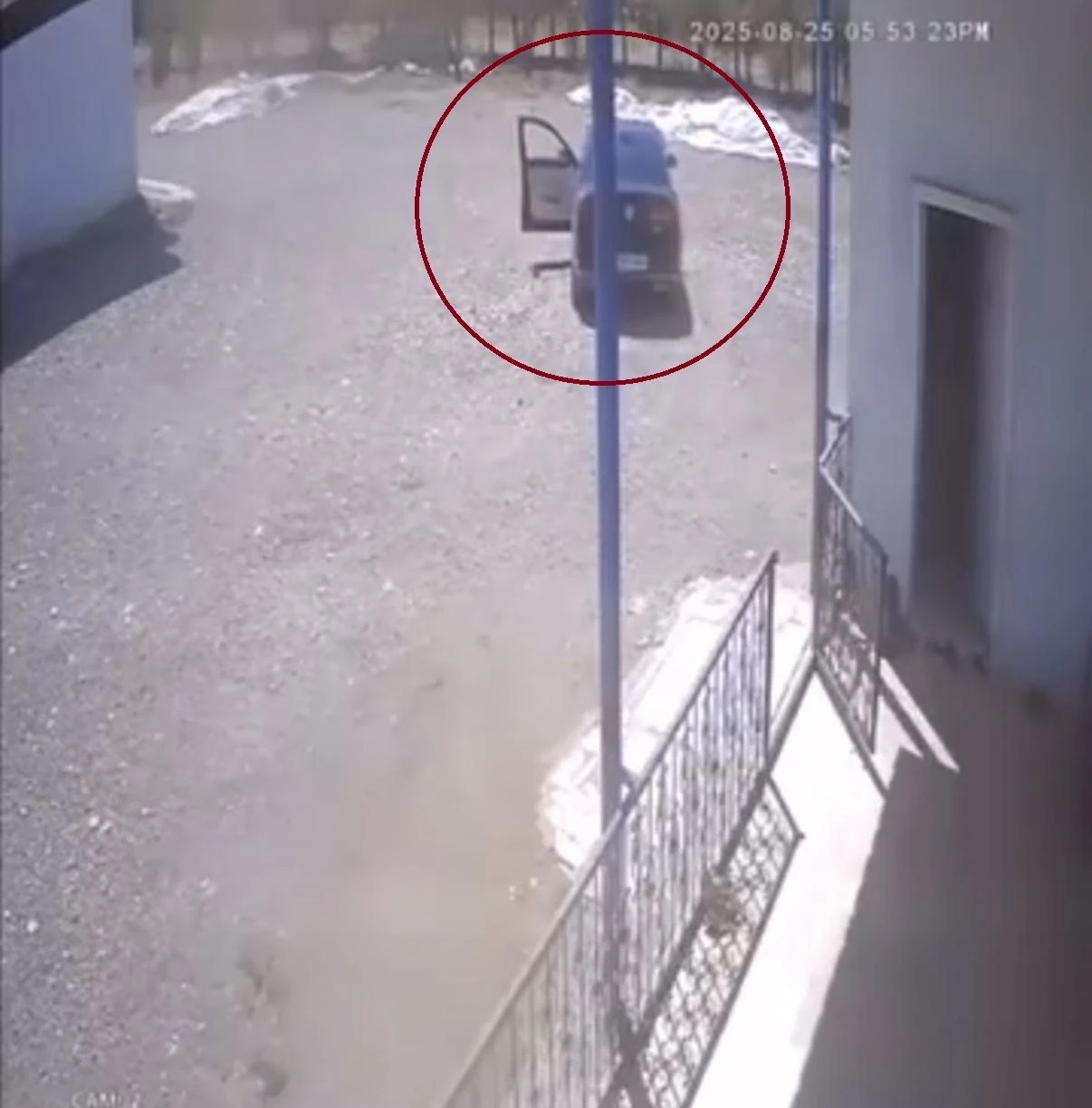İlçenin kırsal Sağdıçlı Mahallesi Değirmentepe Küme Evleri’nde sürücüsünün el frenini çekmeyi unuttuğu otomobil, kayarak duvara çarptı. Kimsenin yaralanmadığı kaza anı güvenlik kamerasına yansıdı. Görüntüde, otomobilin kapısı açık bir süre sonra kaydığı ve duvara çarptığı görüldü.