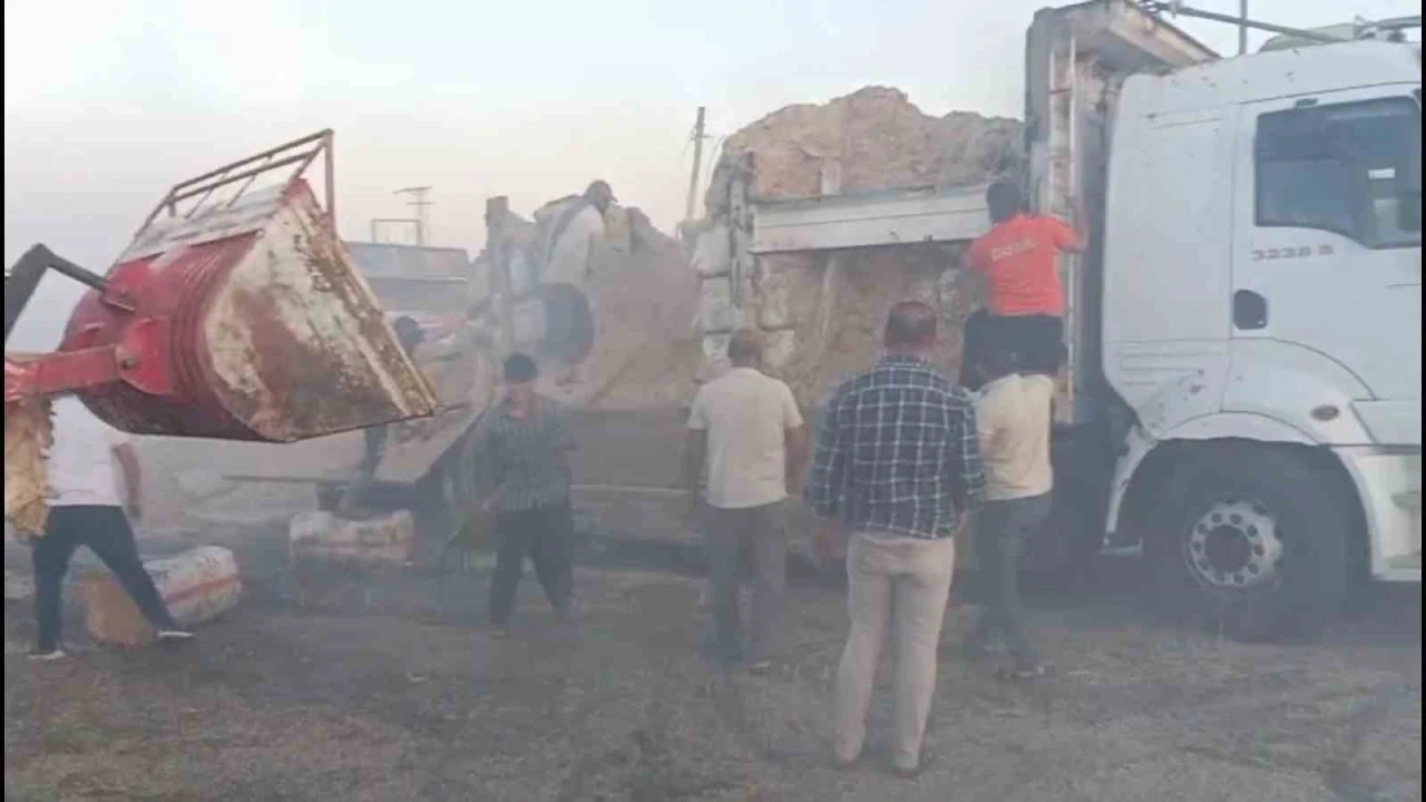 Diyarbakır’ın Silvan ilçesinde kamyonda alev alan saman balyaları vatandaşlar ve itfaiye ekiplerinin müdahalesiyle söndürüldü.