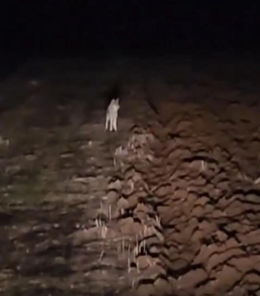 Görüntülerde, kurtların tarlada toprak kazma hareketleri dikkatle izlenebiliyor. Abiş, karşısındaki vahşi hayvanların hareketlerini şaşkınlık içinde izlerken, bu sıra dışı anı cep telefonuyla ölümsüzleştirdi.