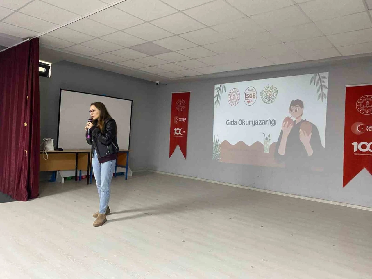 DÜZCE (İHA) – Düzce’de ilkokul öğrencilerine diyetisyenden gıda okur yazarlığı eğitimi verildi.