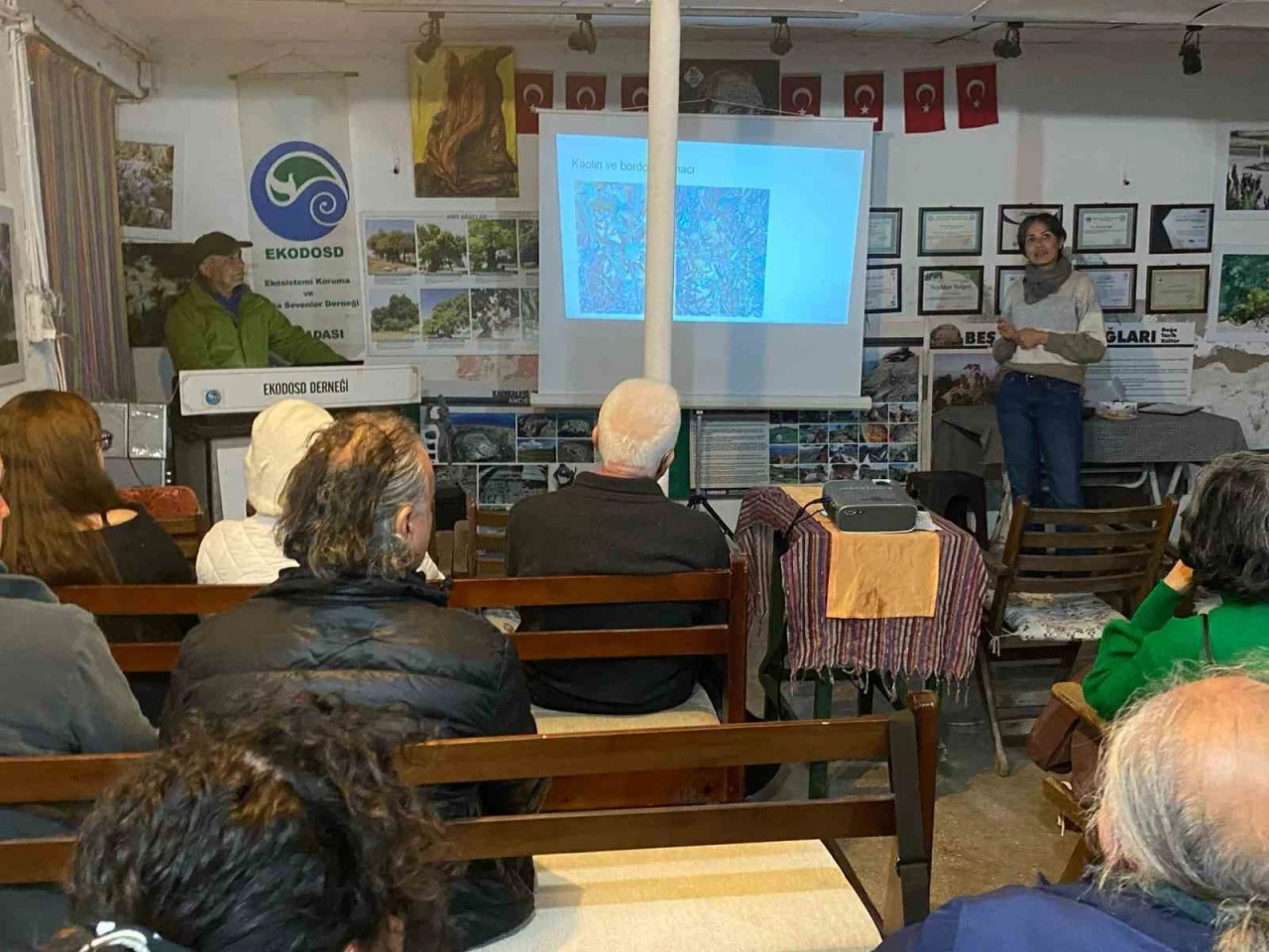 Ekosistemi Koruma ve Doğa Sevenler Derneği’nin (EKODOSD) Çarşamba Söyleşileri’nde bu hafta onarıcı tarım uygulamalarını deneyerek zeytin yetiştirme ve zeytinyağı ile sofralık zeytin üretme konuları anlatıldı. Aydın’da tarihin ve ekosistemin korunması adına önemli çalışmalar yürüten Ekosistemi Koruma ve Doğa Sevenler Derneği (EKODOSD), ‘Çarşamba Söyleşileri’ne aralıksız devam ediyor. Bu çerçevede düzenlenen söyleşinin bu haftaki konusu ise "Zeytinlikte onarıcı tarım uygulamak" oldu. Söyleşilerin bu haftaki konuğu ise zehirsiz tarım üzerine araştırmalar yapan Demet Atınç oldu. Onarıcı tarım uygulamaları deneyerek zeytin yetiştirmeye ve zeytinyağı ile sofralık zeytin üretmeye başlayan Atınç, "Zeytinlikte Onarıcı Tarım Uygulamak" konulu bir sunum gerçekleştirdi. Her hafta gerçekleştirilen söyleşilerin devam edeceğini ifade eden EKODOSD Başkanı Bahattin Sürücü, söyleşi ile ilgili yaptığı açıklamada "Çarşamba Söyleşilerinde bu hafta Demet Atınç konuğumuz oldu. Görsel iletişim tasarımı bölümünde akademisyen olarak çalışırken istifa ederek zehirsiz tarım üzerine araştırmalar yapan Demet Atınç ’Zeytinlikte Onarıcı Tarım Uygulamak’ konulu bir sunum gerçekleştirdi. Kuşadası’nda doğallığını büyük ölçüde koruyan Caferli Köyü’ndeki zeytin çiftliğine ortak olup, onarıcı tarım uygulamaları deneyerek zeytin yetiştirmeye ve zeytinyağı ile sofralık zeytin üretmeye başladı. Caferli Köyü’ndeki zeytinlikte uyguladıkları onarıcı tarım yöntemlerinden bahsetti. Kısa süre içinde topraktaki organik madde miktarını nasıl arttırdıklarını ve denedikleri zehirsiz tarım şekillerini örneklerle anlattı. Bunların başında toprak erozyonunu önlemek, karbon gömmek için yeşil gübreleme yapmak, toprağı sürmeden örtülü toprak oluşturmak için otları biçerek toprak üzerinde bıraktıklarını, kaolin uygulaması, kompost ve yaprakları gübre ve malç olarak kullandıklarını söyledi. Yapılan çalışmalar sonucunda zeytinlikte ekosistemin canlandığını, canlı türlerinin arttığını belirtti" ifadelerine yer verdi. Yapılan sunumun ardından konukların sorularını da yanıtlayan Demet Atınça’a, EKODOSD Yönetim Kurulu Üyesi Bilgesu Şamiloğlu tarafından EKODOSD’un teşekkür belgesi takdim edildi.