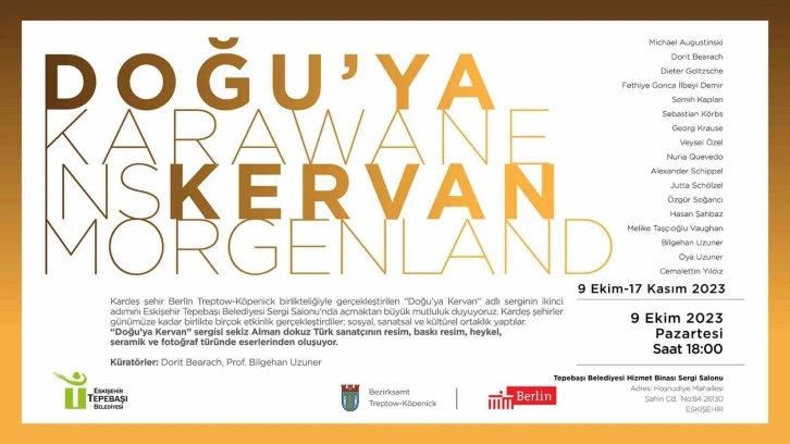 Tepebaşı Belediyesi ve kardeş şehir Berlin Treptow-Köpenick Belediyesi iş birliği ile gerçekleştirilen ‘Doğu’ya Kervan’ isimli karma sergi Eskişehir halkının beğenisine sunulacak.