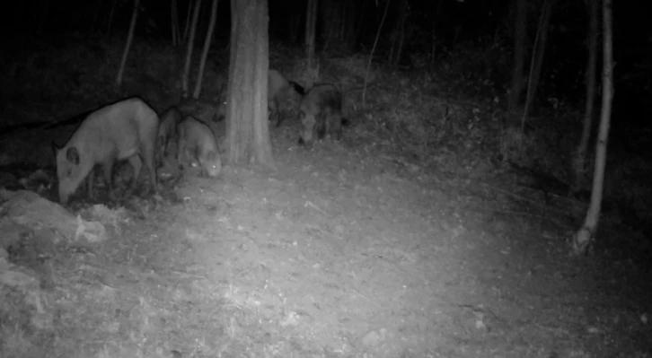 Erzincan’ın Kemaliye ilçesinde domuz sürüsü fotokapanla görüntülendi.