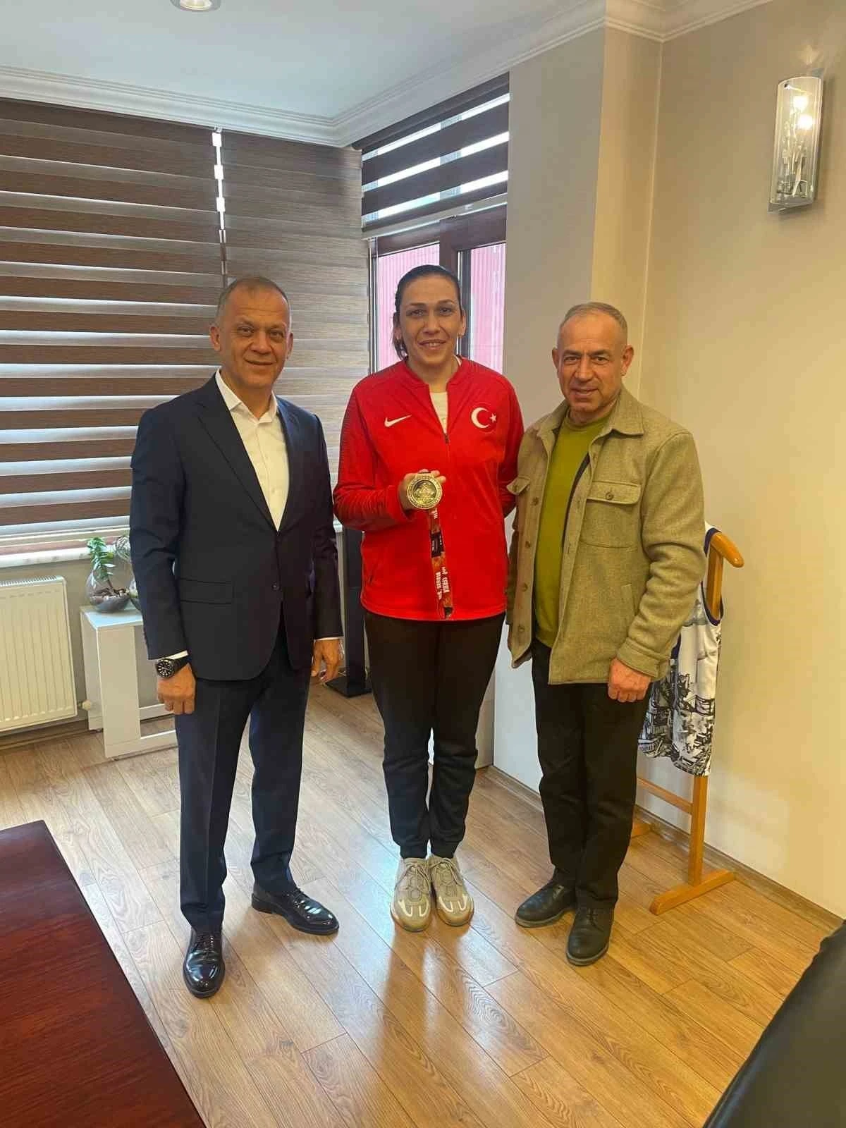 Dünya üçüncüsü olan Elif Güneri’yi tebrik eden iş insanı Remzi Özçelik, Çelikray firması olarak Karabük’te amatör sporların daha fazla desteklenmesi gerektiğini söyledi.