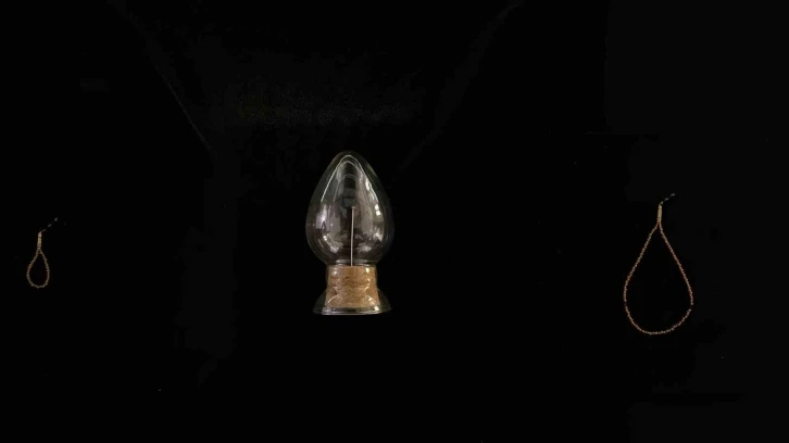 İmame kısmı 22 ayar altından yapılan eserlerde Allah lafzı yer alıyor. Can fanus içinde yer alan üç eser, telefonun fanusun üzerine bırakılıp merceğinden yakınlaştırılmasıyla bakılıyor.