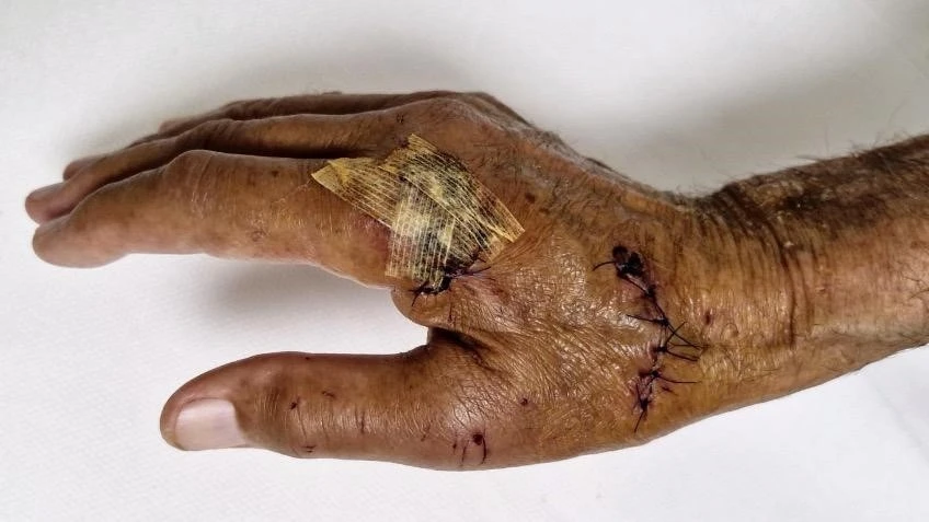 Olay sonrası eşini aradığını ve özel bir hastaneye kaldırıldığını belirten Koçak, "Elimden ayağımdan fırlayan kan nedeniyle en az 2 kilo kan kaybettim. Kan kuruyunca da ip haline gelmişti. 2-3 yerden 20’ye yakın dikiş atıldı. Üstelik baş parmağımın üstündeki işaret parmağımın kemiği de çatlamış. Kazadan sonra 1 ay geçti, hâlâ geçmedi. Üç defa antibiyotik kullandım ama buna rağmen iyileşemedim" dedi.