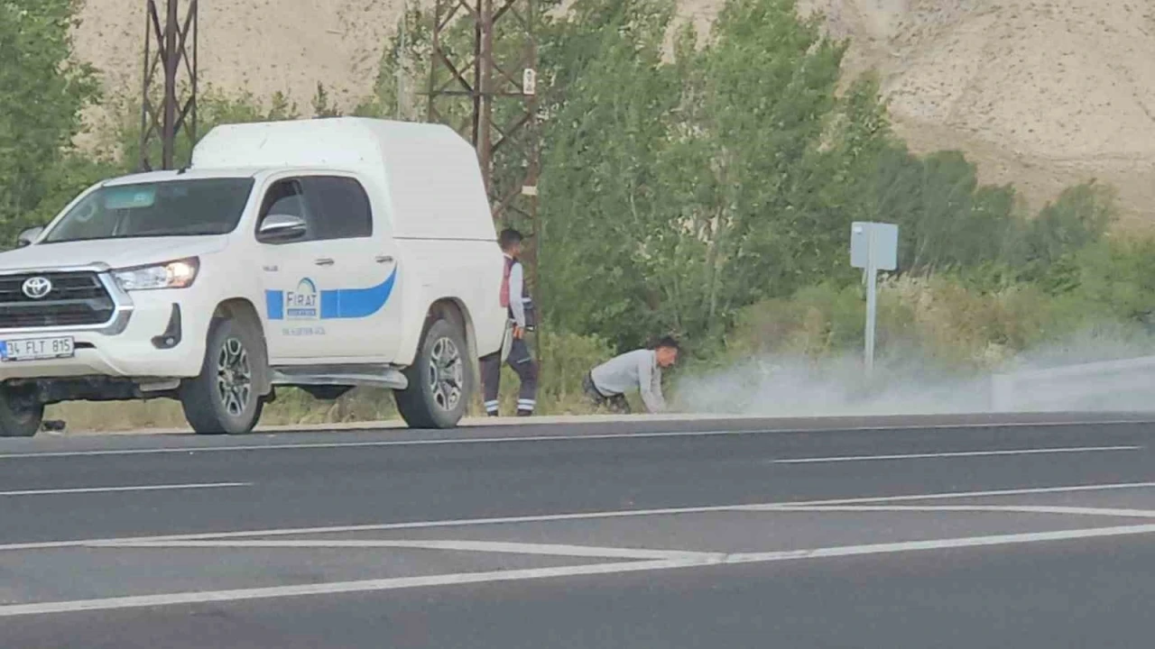 Darende ilçesi Sanayi Sitesi Kavşağı mevkisinde, kayısı bahçelerinin bulunduğu alanda henüz belirlenemeyen bir nedenle yangın çıktı. Yangını fark eden bir sürücü, aracını yol kenarına park ederek hemen alevlere müdahale etti.