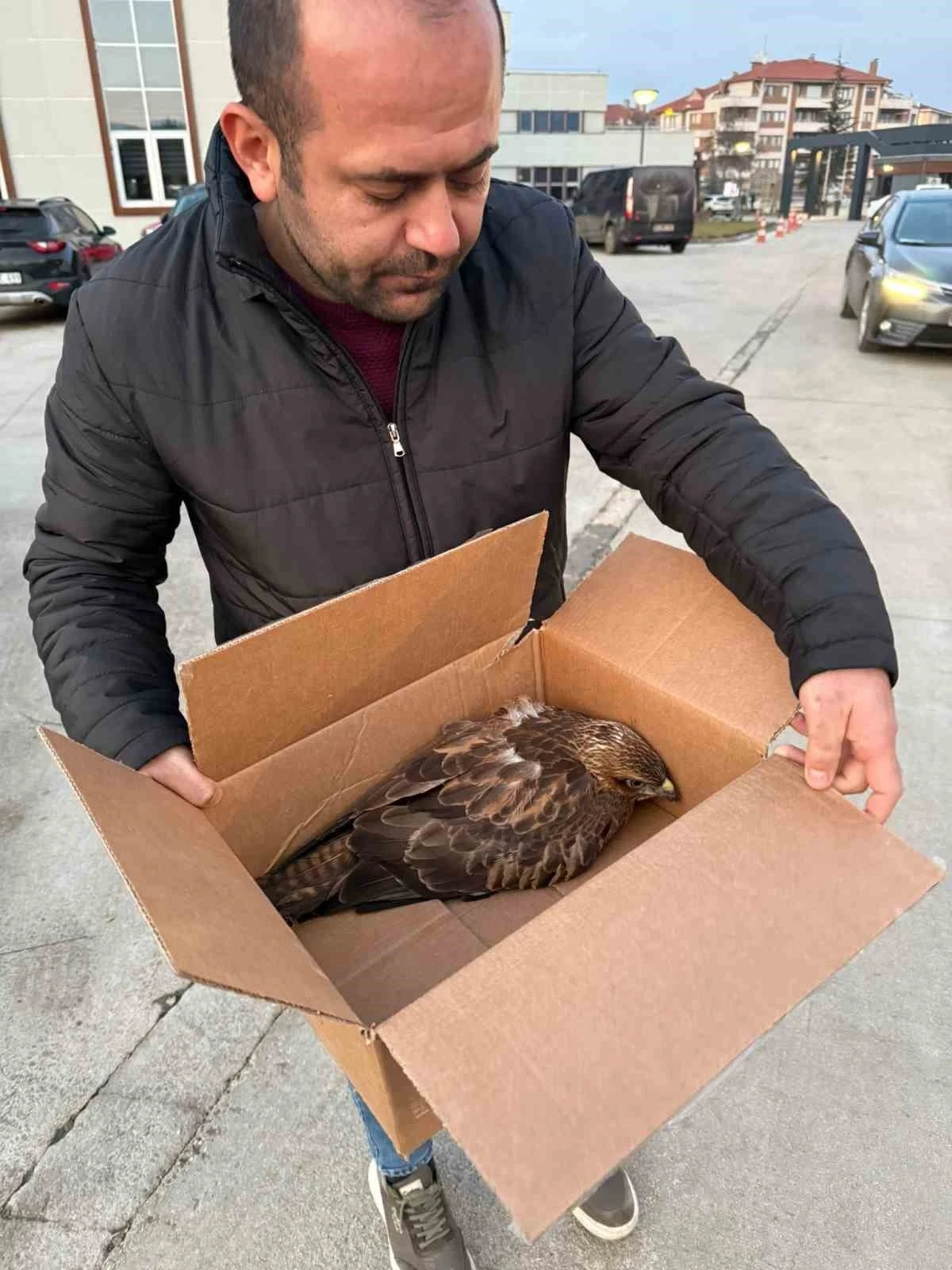 Bolu’da bir otomobilin çarptığı kızıl şahin yaralandı. Yoldan geçen sürücüler tarafından fark edilen yaralı kuş tedavisi yapılmak üzere Doğa Koruma ve Milli Parklar Şube Müdürlüğü ekiplerine teslim edildi.