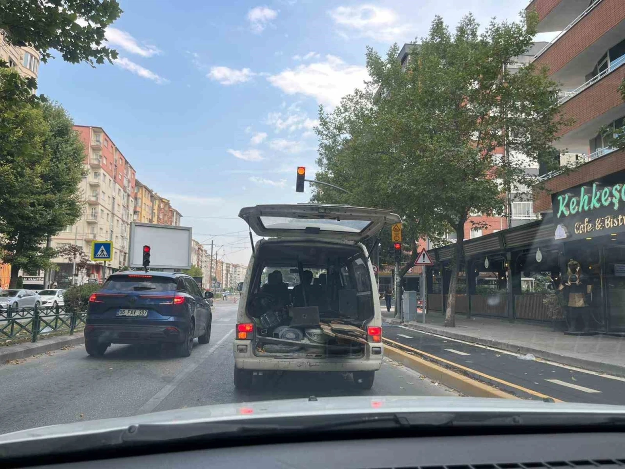 Eskişehir’de bir minibüsün bagajına kapısı açık bir şekilde yüklenen keresteler trafiği tehlikeye soktu. Duyarsız sürücünün bu davranışı ’pes’ dedirtti.