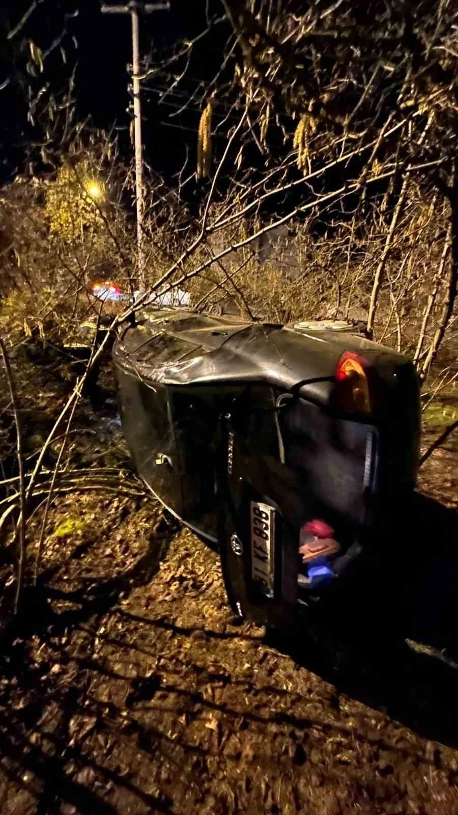 Düzce’de sürücüsünün direksiyon hakimiyetini kaybettiği otomobil şarampole uçarak devrildi. Kazada 1 kişi yaralandı.
