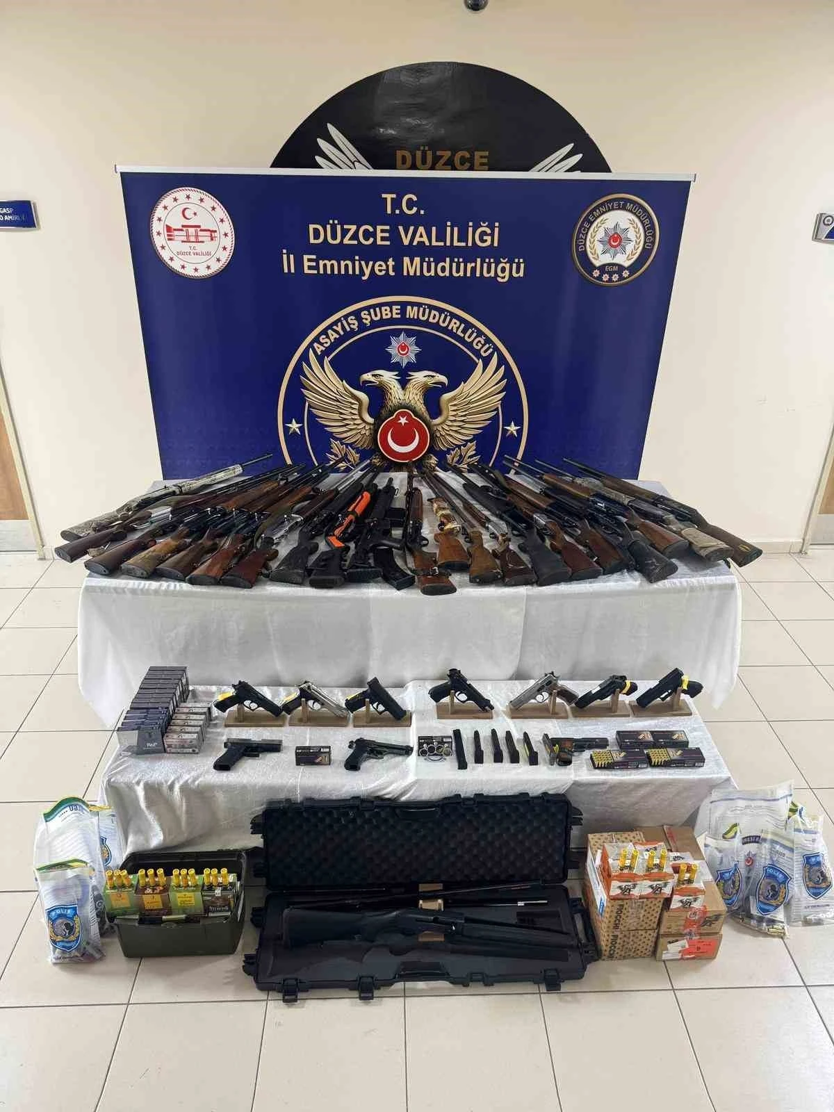 DÜZCE CUMHURİYET BAŞSAVCILIĞI KOORDİNESİNDE YÜRÜTÜLEN ÇALIŞMA İLE SOSYAL MEDYA ÜZERİNDEN SİLAH TEŞHİRİ YAPARAK KORKU VE PANİK OLUŞMASINA NEDEN OLAN 20 ŞÜPHELİNİN ADRESİ TESPİT EDİLDİ. DÜZCE MERKEZ VE İLÇELERİNDE 20 ADRESE EŞ ZAMANLI OLARAK YAPILAN OPERASYONDA ÇOK SAYIDA SİLAH VE YASADIŞI MALZEME ELE GEÇİRİLDİ.