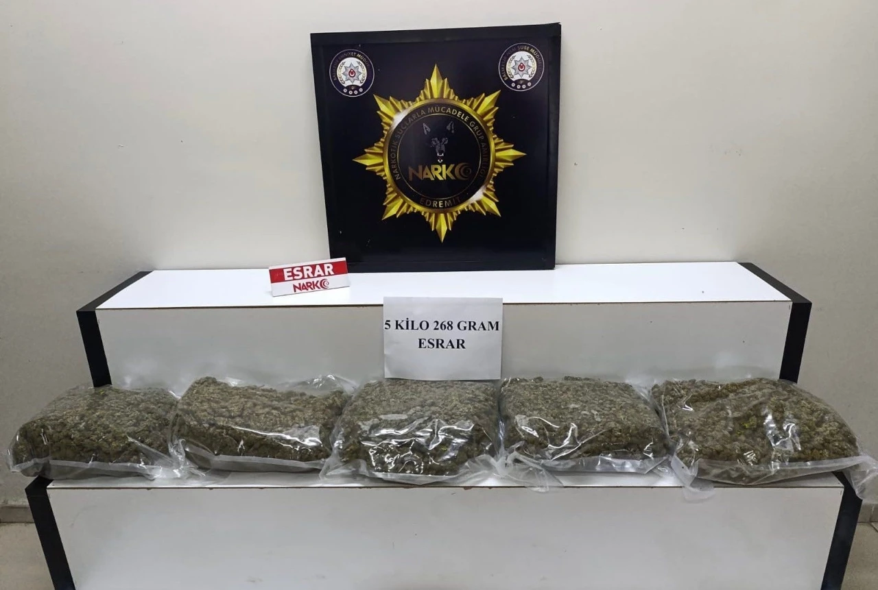 Edinilen bilgiye göre, bir ihbarı değerlendiren Edremit Narkotik Suçlarla Mücadele Grup Amirliği ekipleri, belirlenen adrese operasyon düzenledi. Yapılan aramalarda 5 kilogram esrar maddesi ele geçirildi. Gözaltına alınan şüpheli hakkında "uyuşturucu madde ticareti yapma" suçundan adli işlem başlatıldı. Olayla ilgili soruşturma sürüyor.