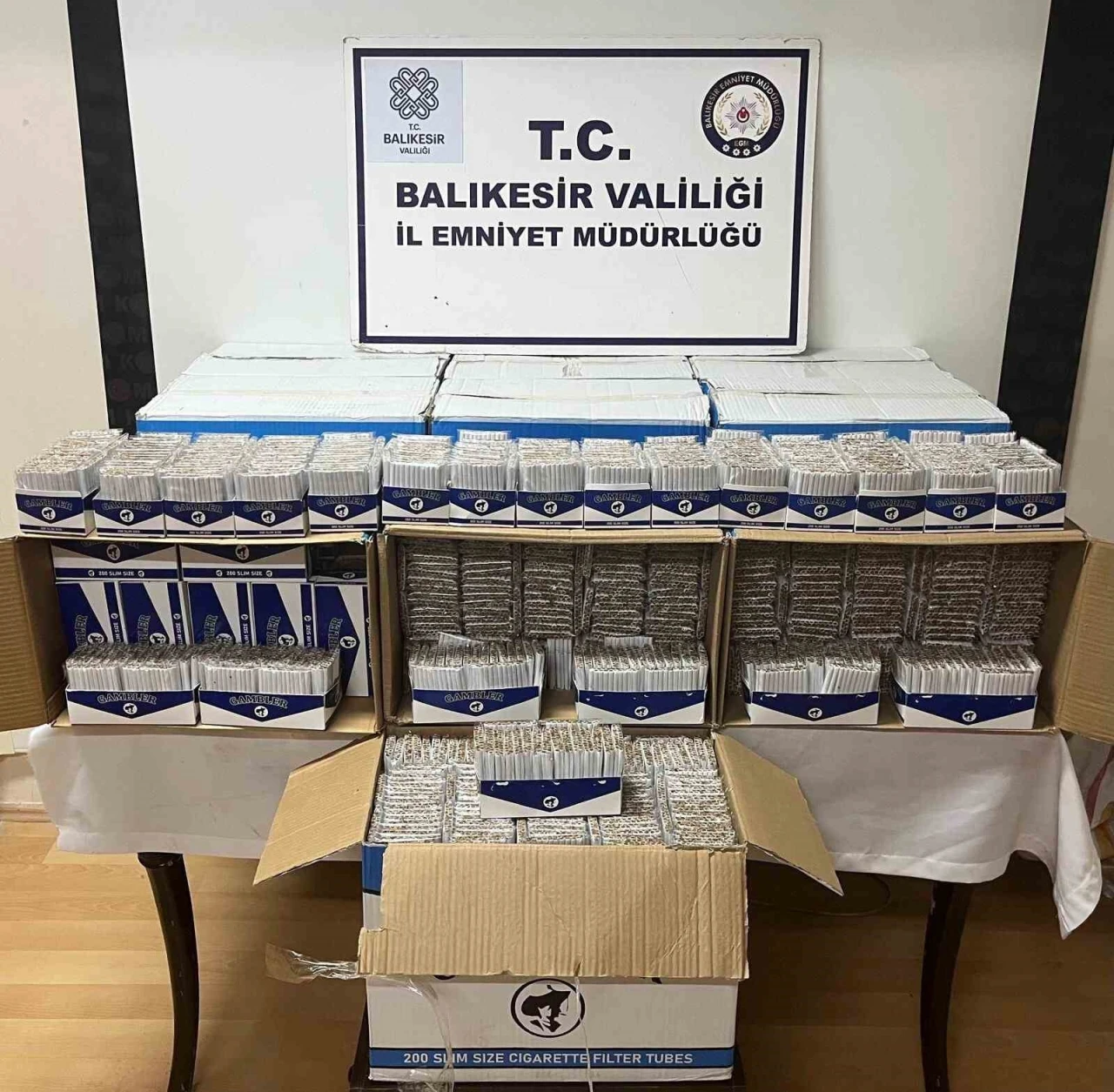 Edremit Kaçakçılık ve Organize Suçlarla Mücadele (KOM) Şube Müdürlüğü görevlilerince yapılan çalışmada; piyasaya sürülmeye doldurulmuş hazır halde 100 bin adet makaron sigara ele geçirdi. Polis ekipleri D.M isimli şüpheli şahıs hakkında 5607 SKM suçundan adli işlemlere başladı.