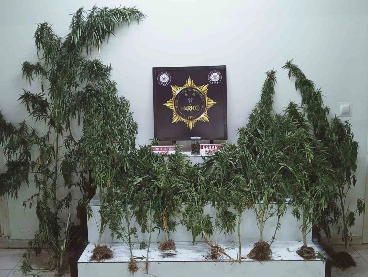 Edinilen bilgiye göre, Edremit İlçe Emniyet Müdürlüğü Narkotik Suçlarla Mücadele Büro Amirliği ekipleri, bir adrese operasyon düzenledi. Yapılan aramada 28,13 gram esrar maddesi ile saksılara ekili 14 kök kenevir bitkisi bulundu.