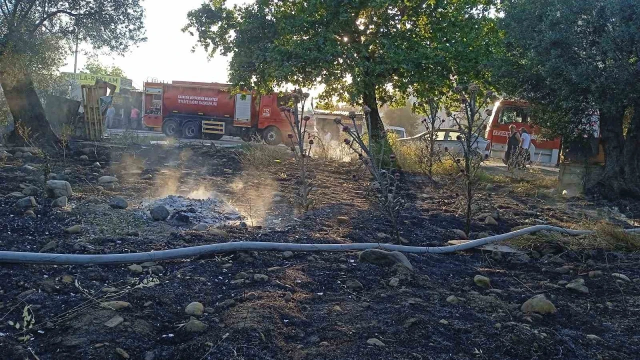 Balıkesir’in Edremit ilçesinde zeytinlik alanda meydana gelen yangında, çok sayıda zeytin ağacı yandı.