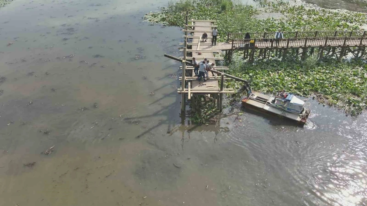 Düzce (İHA) – Düzce’nin Gölyaka İlçesi sınırları içinde bulunan Efteni Gölü’nün seyri için yapılan ahşap iskele sel ve su baskınlarında zarar görerek, ekonomik ömrünü tamamladı. İskele yenilenmeye başladı.