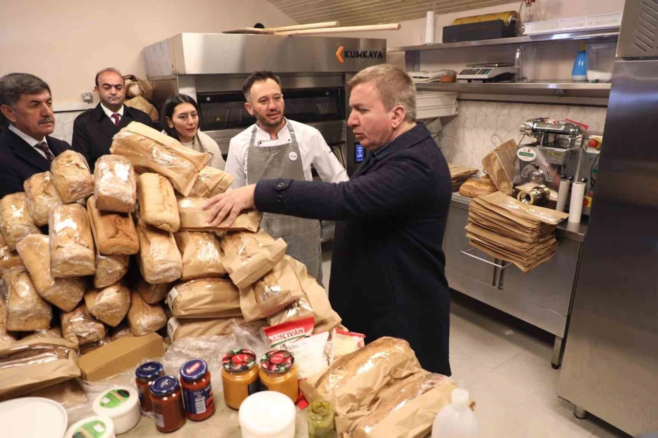 Vali Aydoğdu, daha sonra beraberindeki protokol üyeleriyle birlikte işletmeyi gezerek üretilen ekmeklerden tattılar.
