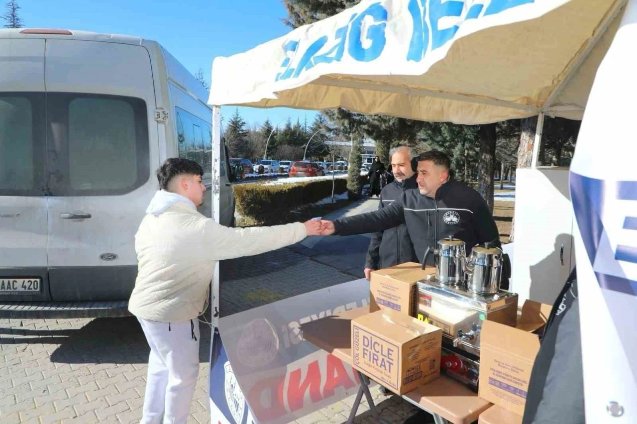 Elazığ Belediyesi, ÖSYM tarafından düzenlenen Milli Savunma Üniversitesi (MSÜ) askeri aday belirleme sınavı öncesinde, adaylara ikramlarda bulunarak emanet kabul noktası desteği sağladı.
