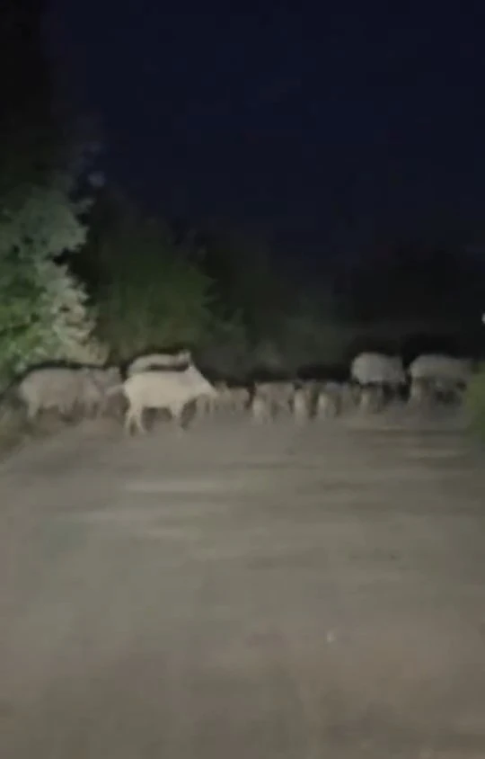 Elazığ’da merkeze bağlı Şabanlı köyünde domuzlar ve yavruları köy yoluna indi. Domuz ve yavruları, aracın gelişine aldırış etmezken, sürücü bir süre beklemek zorunda kaldı. Domuzlar bir süre sonra ormanlık alana giderek gözden kaybolurken sürücü ise yoluna devam etti. O anlar cep telefonu kamerasına yansıdı.