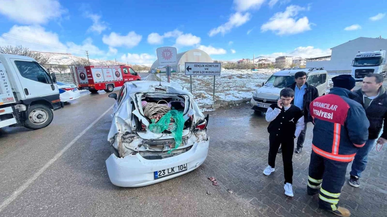 Kaza, Kovancılar ilçesi Gökdere kavşağında meydana geldi. Edinilen bilgilere göre, 23 LK 104 plakalı otomobil ile greyder çarpıştı. Kazada 1 kişi araçta sıkıştı. Haber verilmesi üzerine olay yerine 112 acil sağlık, itfaiye ve polis ekipleri sevk edildi. Kazada araçta sıkışan şahıs, itfaiye ekiplerinin müdahalesi ile bulunduğu yerden çıkartılarak sağlık ekiplerine teslim edildi. Yaralı, olay yerinde yapılan ilk müdahalesinin ardından ambulansla hastaneye kaldırıldı.
